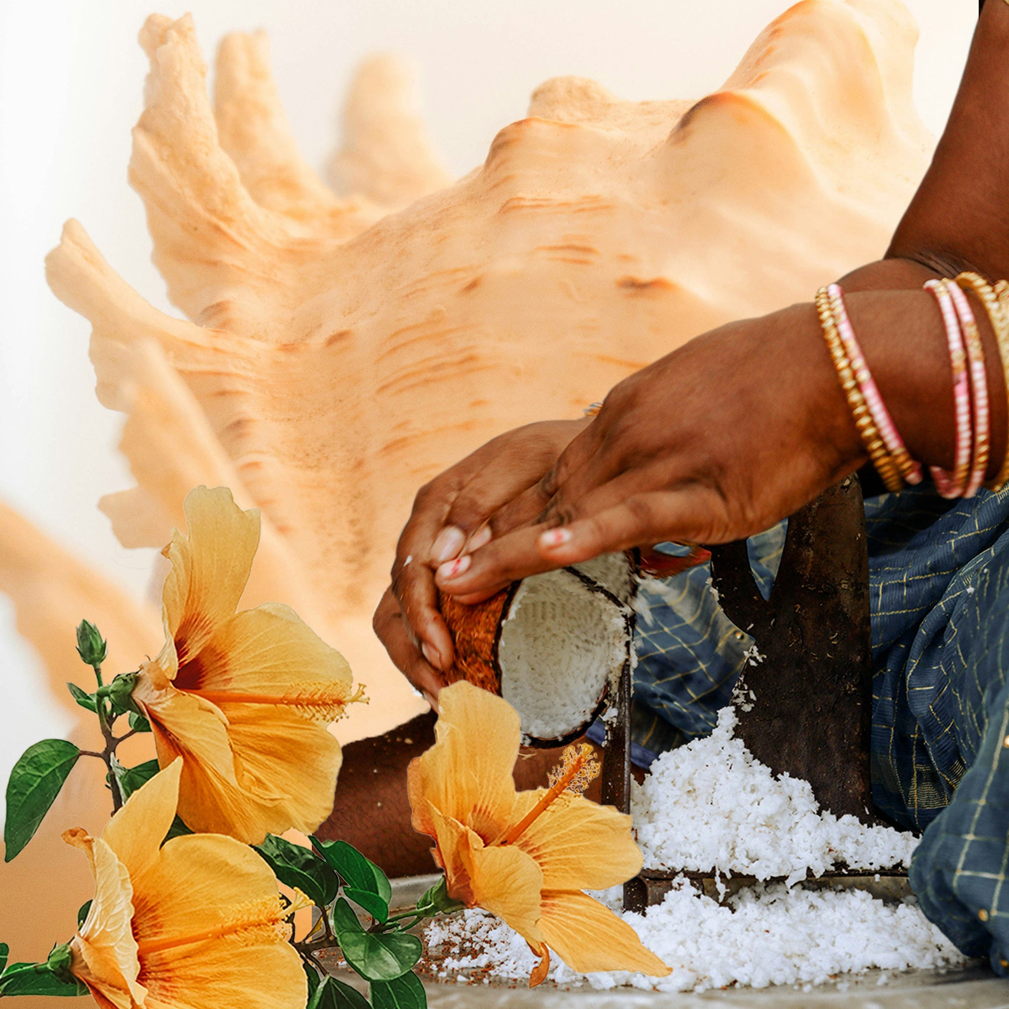 These ingredients inspired our formulas, blending Ayurvedic wisdom with tropical abundance and reflecting the way our culture itself was formed through resilience and nature.